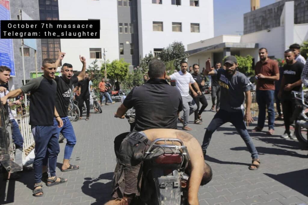 Hier sehen wir, wie sich gazanische Zivilisten an diesem Überfall beteiligen.