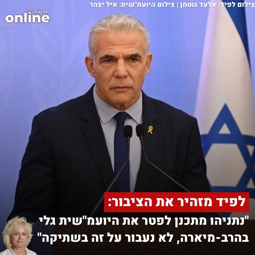 Oppositionsführer Yair Lapid zu Beginn der Sitzung der Yesh Atid-Fraktion: „Ich möchte die Öffentlichkeit warnen: Netanyahu plant, die Rechtsberaterin der Regierung, Gali Beharve-Miara, zu entlassen.“