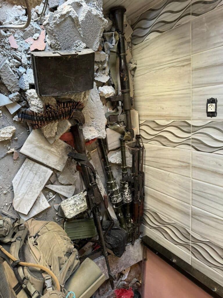 Bei den Durchsuchungen orten die Einsatzkräfte Dutzende Kampfgelände und eingeschlossene Gebäude und zerstören sie. Zu den Ergebnissen der Durchsuchungen gehörte, dass mithilfe einer Drohne ein Munitionslager mit Sprengstoff, Granaten, Westen, einem Kit zum Abschuss von Flugabwehrraketen, Kalaschnikow-Gewehren und Panzerabwehrraketen geortet wurde.