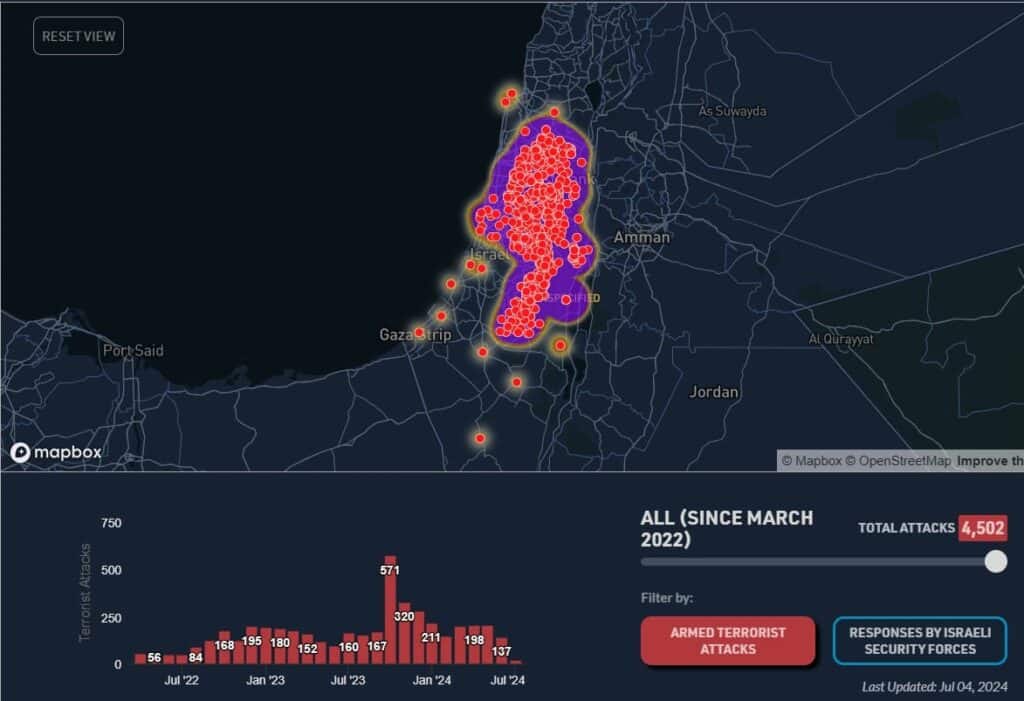 Die Studie des FDD verzeichnet 4’502 bewaffnete Terroranschläge in Judäa und Samaria, die von arabischen Terroristen zwischen März 2022 und dem 4. Juli 2024 gegen israelische Zivilisten verübt wurden. Darin sind die massiven Verluste an israelischen Leben im Rest des Landes Israel nicht enthalten, auch nicht die am 7. Oktober zerstörten südlichen Gemeinden, nicht die durch Terroranschläge in Jerusalem, Tel Aviv, Haifa und anderen israelischen Städten verlorenen Leben und auch nicht die vielen tausend vereitelten Anschläge, bei denen es keine israelischen Opfer oder Todesopfer gab, oder die Anschläge auf israelische Truppen.