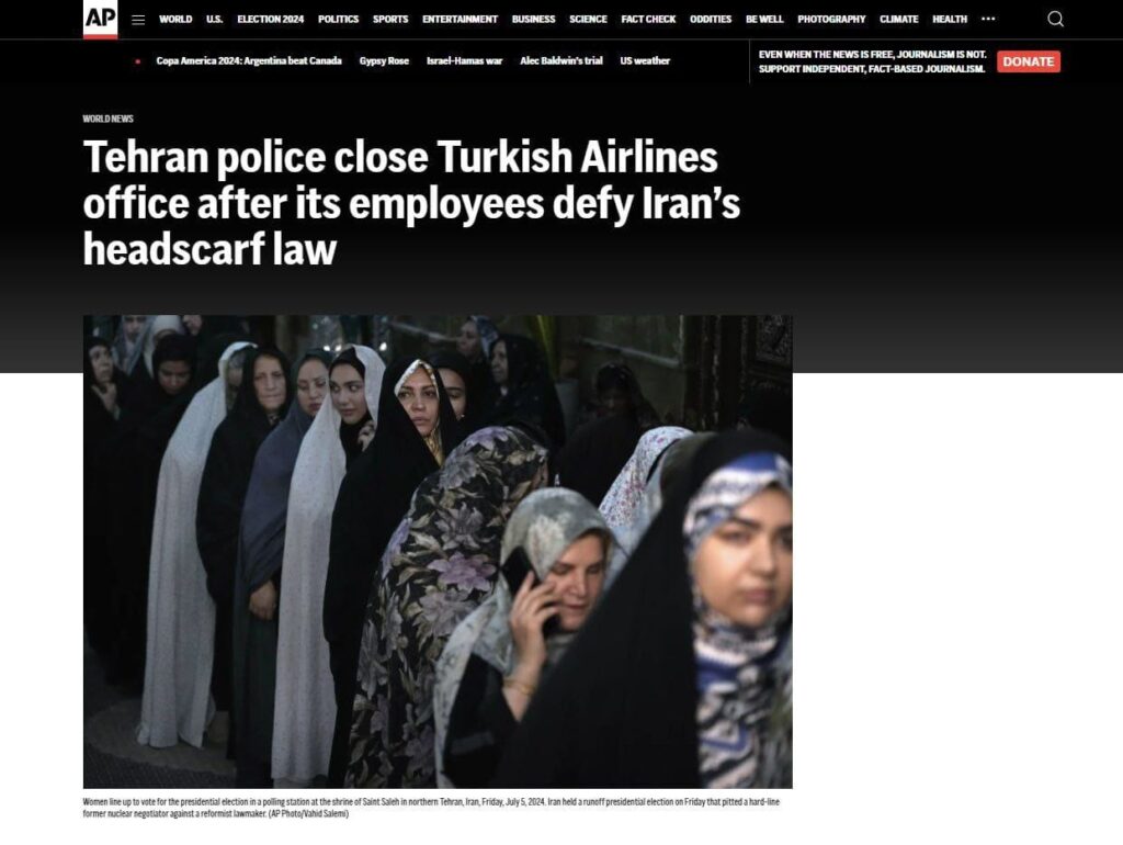 Die Teheraner Polizei schloss die Büros von Turkish Airlines in der Hauptstadt, nachdem sich die Mitarbeiter des Büros, iranische Staatsbürger, geweigert hatten, wie vorgeschrieben einen Hijab zu tragen…