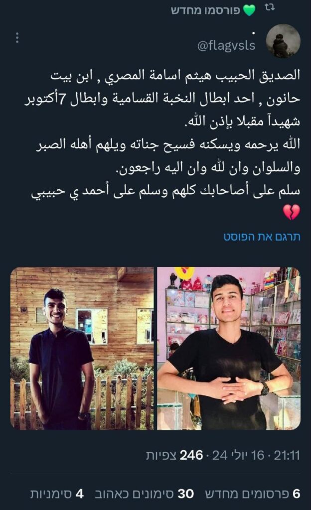 Es stellte sich heraus, dass der Mann als einer der Helden der Eliteeinheit Nukhba Hamas und als „Held des 7. Oktober“ bezeichnet wird.