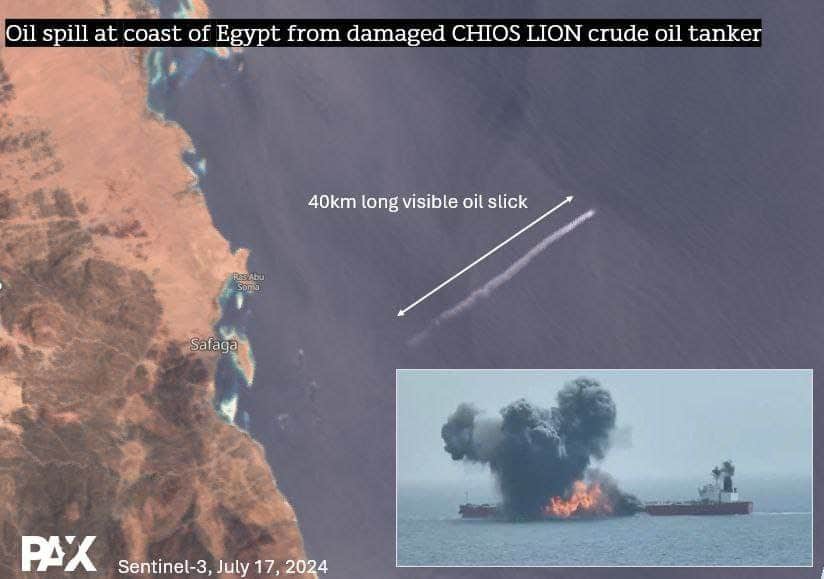 Infolgedessen zeigte die Satellitenüberwachung eine 40 Kilometer lange Ölspur, als der Tanker die Richtung in Richtung der Küste des Roten Meeres in Ägypten änderte.