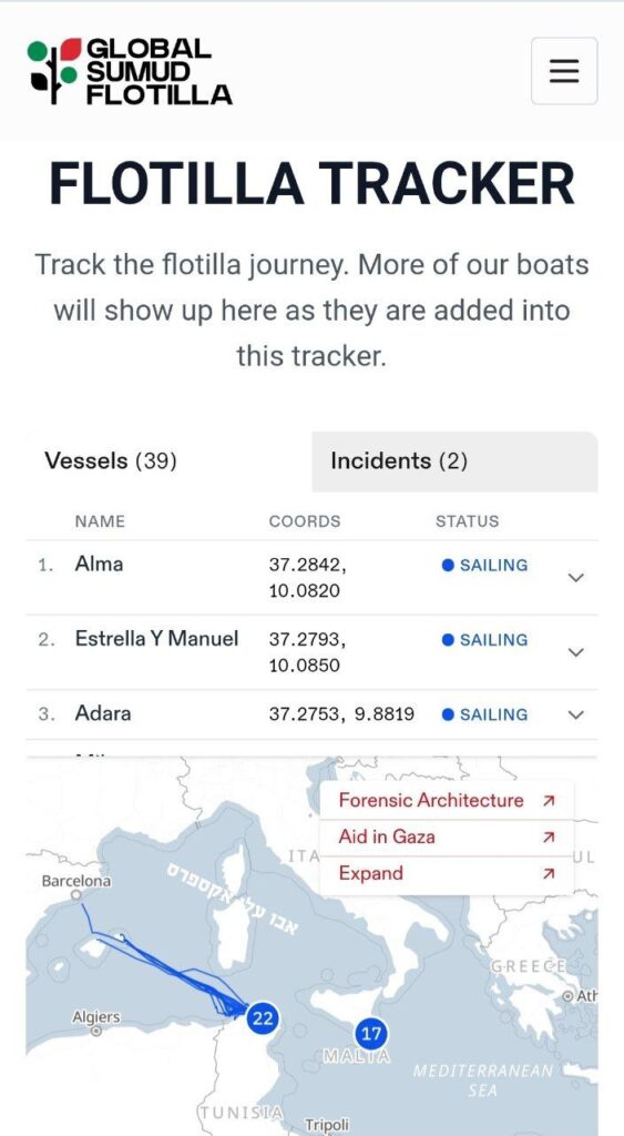 22 Schiffe sind mit 11 Tagen Verspätung von Tunesien in Richtung Gaza aufgebrochen bzw. brechen jetzt auf.