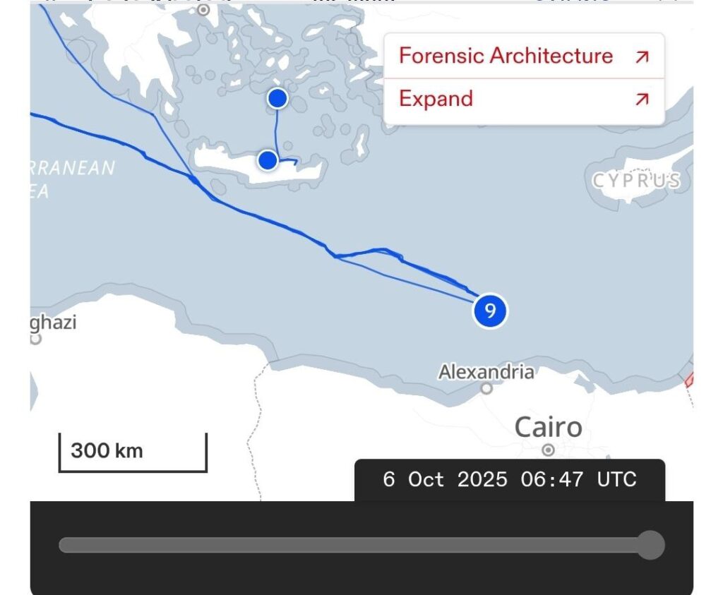 Laut der aktualisierten Fortschrittskarte der Flottillenorganisatoren befinden sich 9 (weitere) Schiffe der Flottille derzeit etwa 400 Kilometer von der Küste Gazas entfernt und rücken weiter in diese Richtung vor.