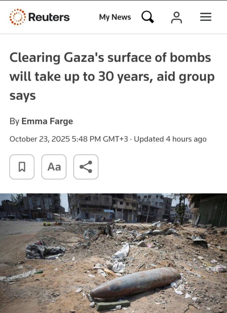 „Es wird 20 bis 30 Jahre dauern, den Gazastreifen von nicht explodierten Kampfmitteln zu säubern„.