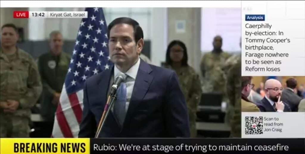 Hier einige Kernsätze aus den Äußerungen von US-Außenminister Marco Rubio während eines Besuchs im Internationalen Koordinationszentrum in Kirjat Gat: