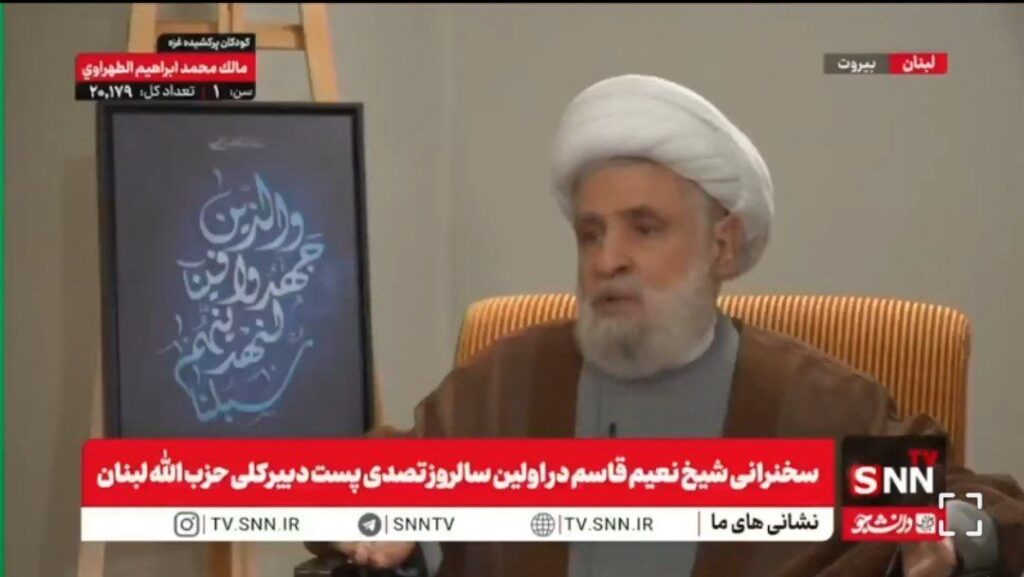 Naim Qassem in einem Interview heute Abend mit dem der Hisbollah nahestehenden Al-Manar-Netzwerk: