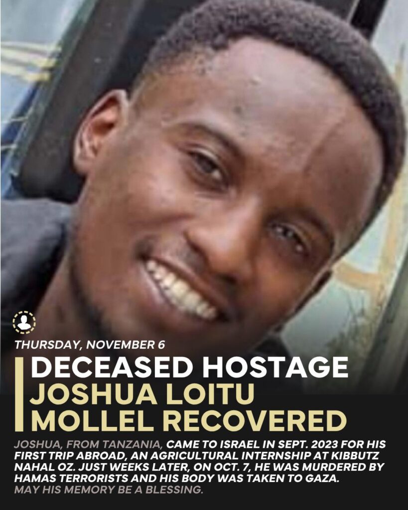 Es handelt sich um Joshua Loitu, ein Agrarstudent aus Tanzania, der erst wenig Monate zuvor zur Ausbildung nach Israel gekommen ist.
