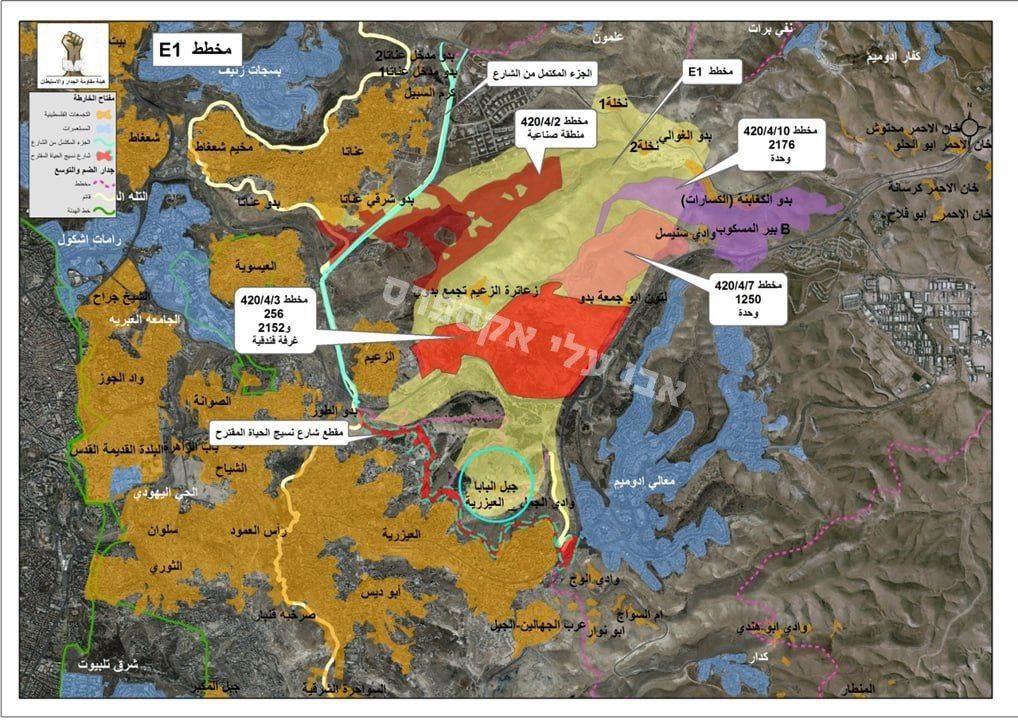 • Die Umsetzung dieses Plans bedeutet die vollständige Trennung Jerusalems von seinem palästinensischen Umland und die Anbindung der Siedlung Ma’ale Adumim an die Stadt im Rahmen des Projekts „Groß-Jerusalem“.