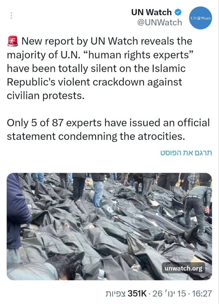 Lediglich 5 von 87 UN-„Menschenrechtsexperten“ verurteilten die gewaltsame Niederschlagung der Proteste im Iran durch das Regime.