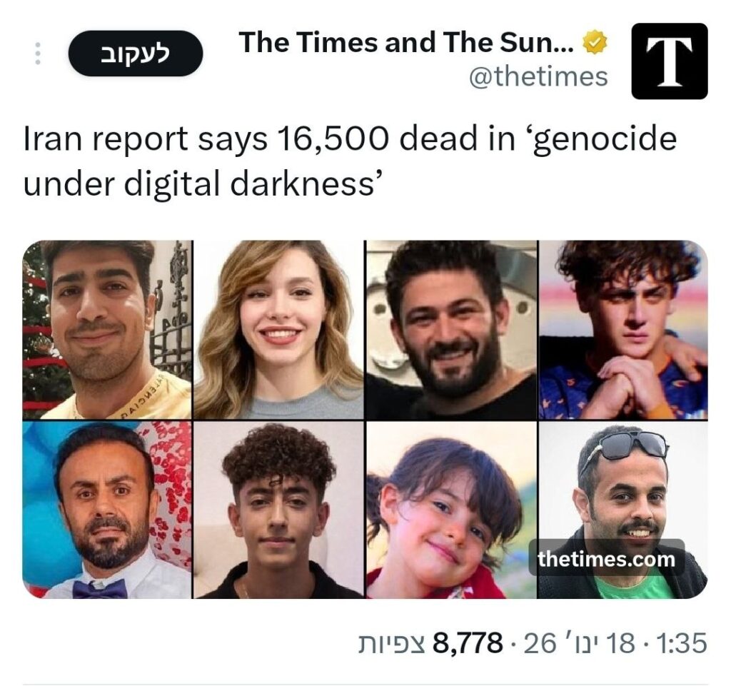 „Ärzte vor Ort im Iran geben an, dass mindestens 16’500 Demonstranten getötet und etwa 330’000 verletzt wurden.