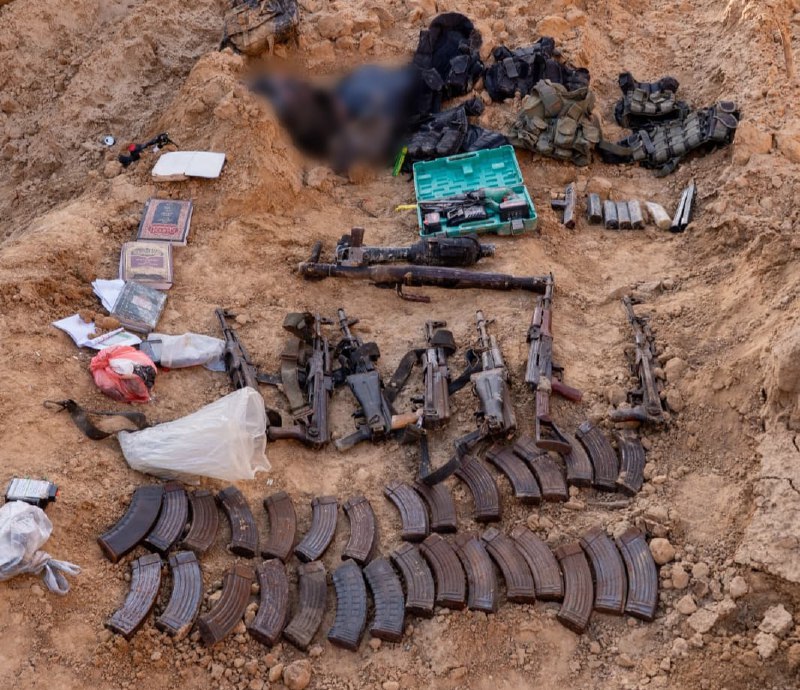 Gestern entdeckten IDF-Soldaten im Rahmen einer Aktion zur Zerschlagung der Terrorinfrastruktur im Gebiet der Gelben Linie im südlichen Gazastreifen einen Schacht mit Dutzenden von Waffen, die von Terrororganisationen im Gazastreifen eingesetzt werden, darunter AK-47 (russische Kalashnikov), RPGs und Magazine.