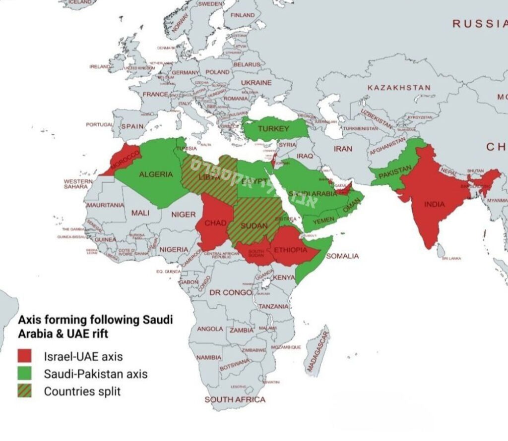 Im Anschluss an meinen gestrigen Beitrag über eine entstehende Achse neuer Allianzen ist hier eine interessante Karte dieser Achsen und regionalen Allianzen, die die Eskalation der Konfrontation zwischen Saudi-Arabien und den Vereinigten Arabischen Emiraten verdeutlicht: