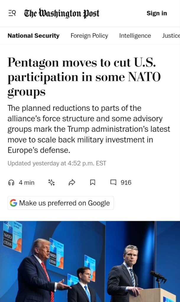 Amerikanische Medien berichten: Das Pentagon wird 200 der 400 Stellen amerikanischer Repräsentanten in 30 verschiedenen NATO-Zentren in Europa streichen.