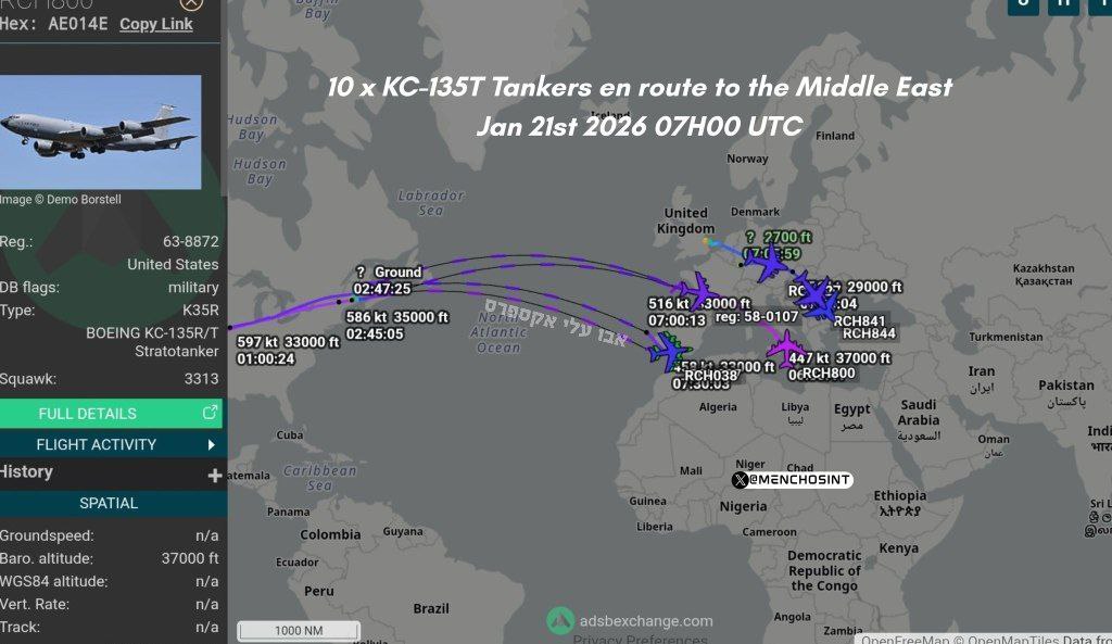 Mindestens zehn amerikanische KC-135-Tankflugzeuge sind in den letzten Stunden von verschiedenen Stützpunkten gestartet, um im Nahen Osten eingesetzt zu werden.