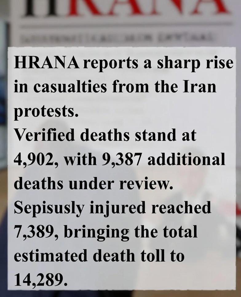 HRANA meldet einen starken Anstieg der Opferzahlen bei den Protesten im Iran.