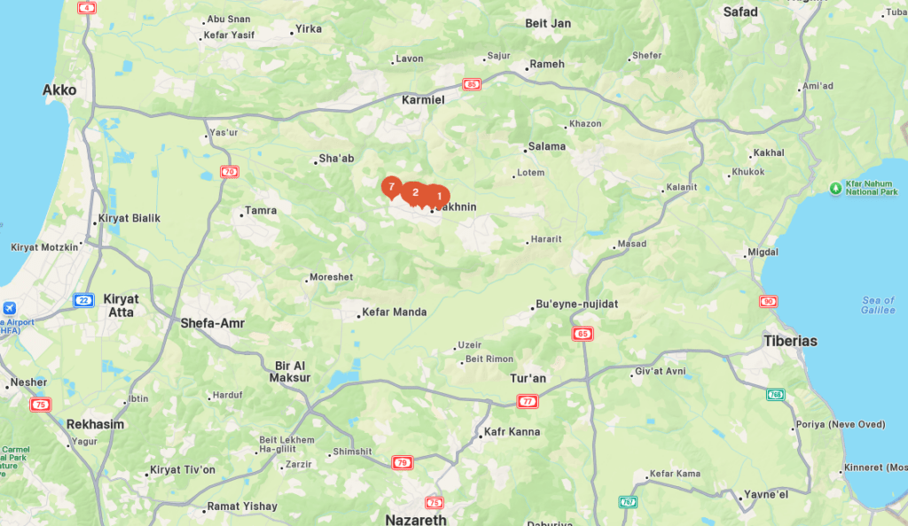 Diese Demonstrationen in Sachnin (zwischen Tiberias und Akko gelegen, auf der Karte rot gekennzeichnet) dauern jetzt, nach anfangs vier Tagen eines „symbolischen Streiks“, bereits fünf Tage an.
