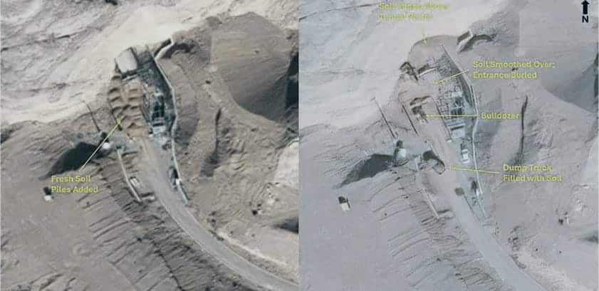 Neue Satellitenbilder deuten darauf hin, dass der Iran die Tunneleingänge der Atomanlage in Isfahan rasch abdichtet, was auf Vorbereitungen für mögliche zukünftige Angriffe schließen lässt.