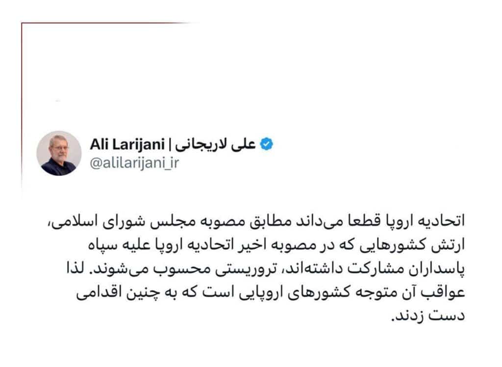 „Die Armeen der europäischen Länder, die an der Entscheidung zur Einstufung der iranischen Revolutionsgarden als Terrororganisation beteiligt waren, gelten aus seiner Sicht nun ebenfalls als Terrororganisationen„