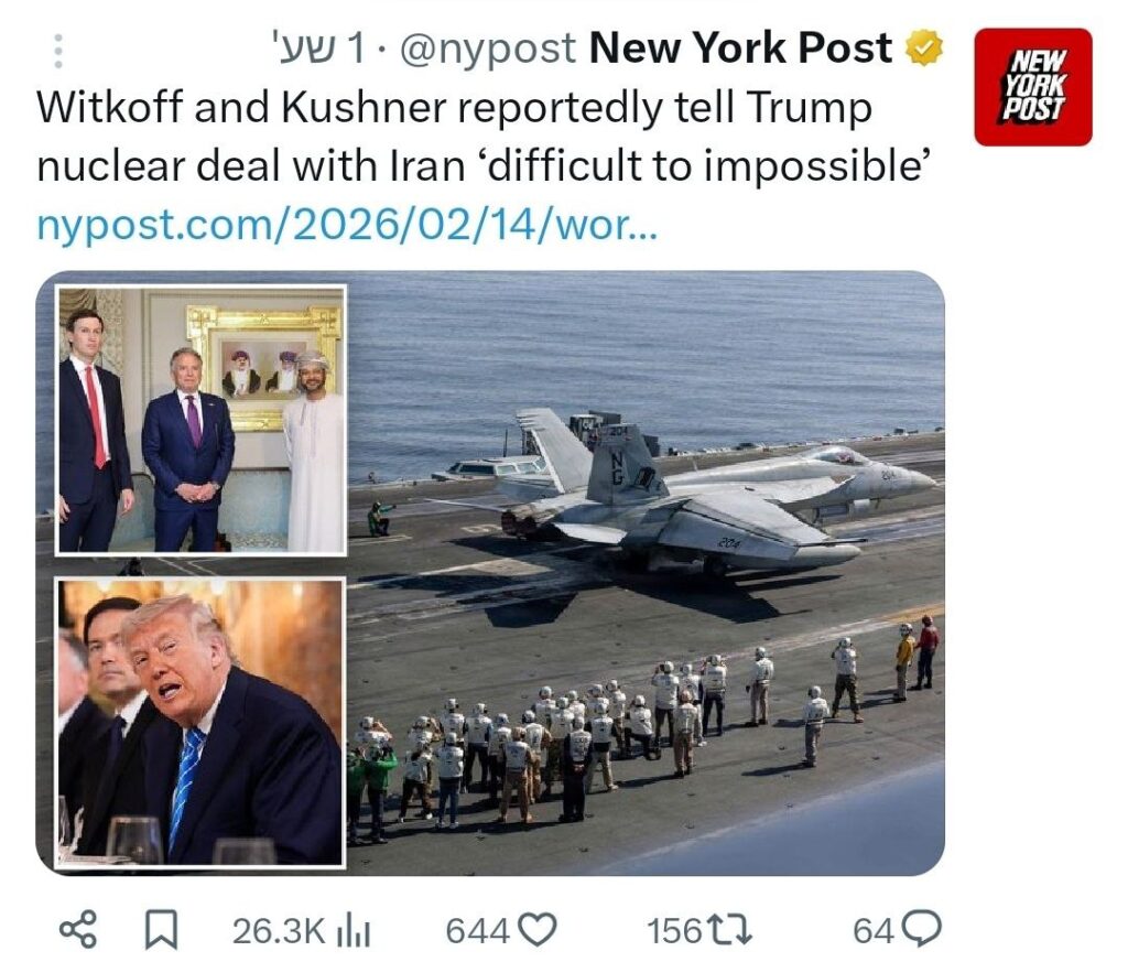 „Der amerikanische Gesandte Steve Witkoff und Jared Kushner berichteten Trump, dass es schwierig bis nahezu unmöglich sei, mit dem Iran eine Einigung in der Atomfrage zu erzielen„
