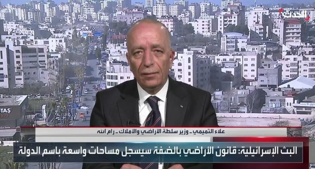 Alaa Tamimi, der für die Landbehörde der Palästinensischen Autonomiebehörde zuständige Minister, bezieht sich auf die israelische Entscheidung bezüglich der Gebiete in Judäa und Samaria: