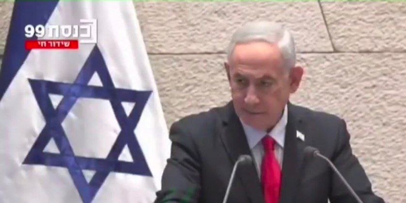 Ministerpräsident Netanjahu in seiner Rede mit den 40 Unterschriften in der Knesset: