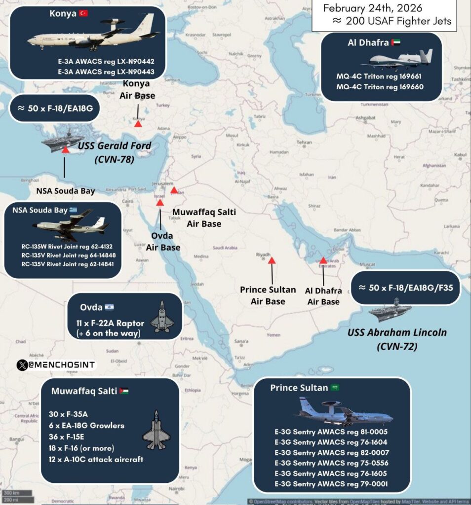 Mindestens 200 amerikanische Kampfflugzeuge sind in der Region stationiert.