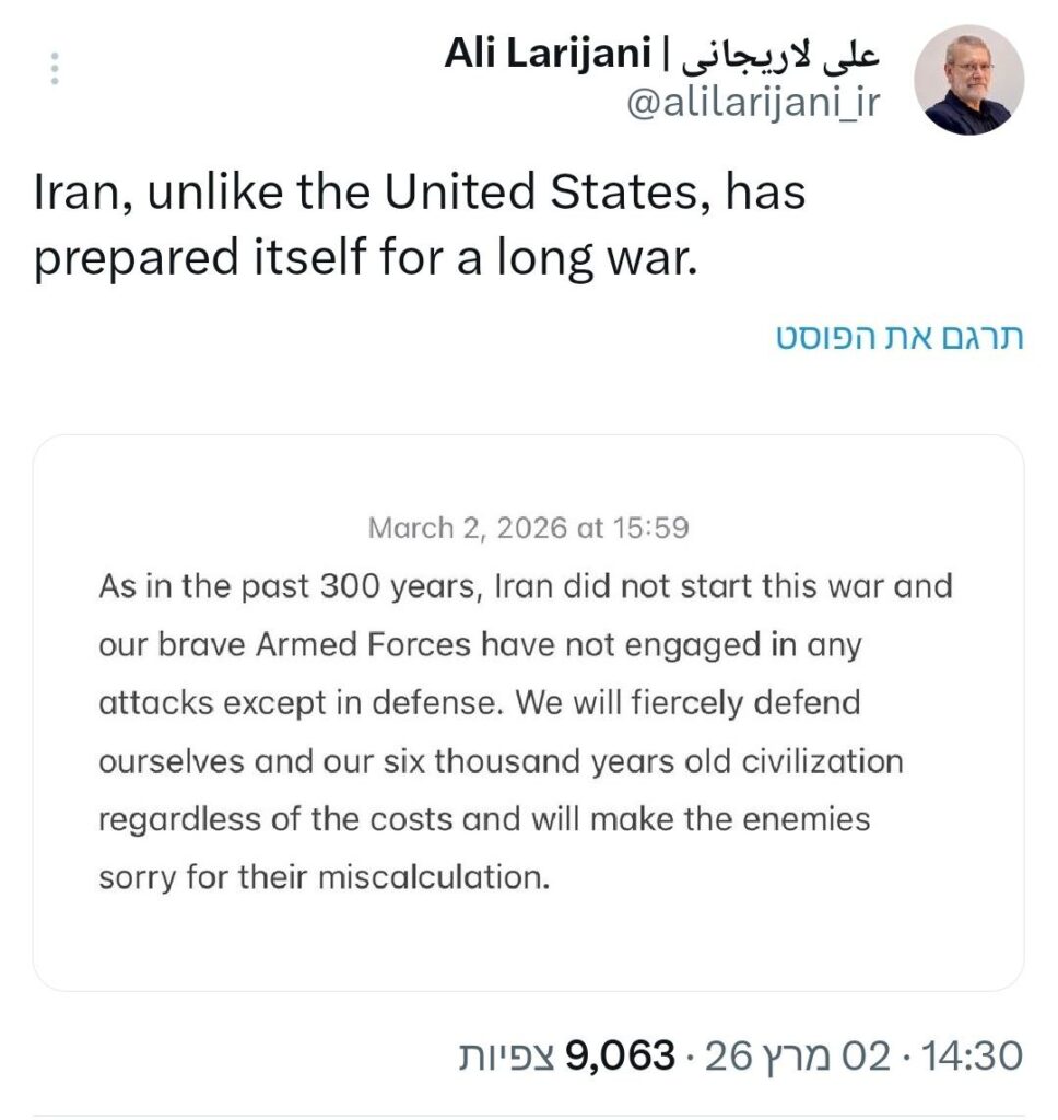 Die iranische Regierung spuckt weiterhin große Töne und Larijani setzt die psychologische Kriegsführung auf Englisch für das amerikanische Publikum fort: