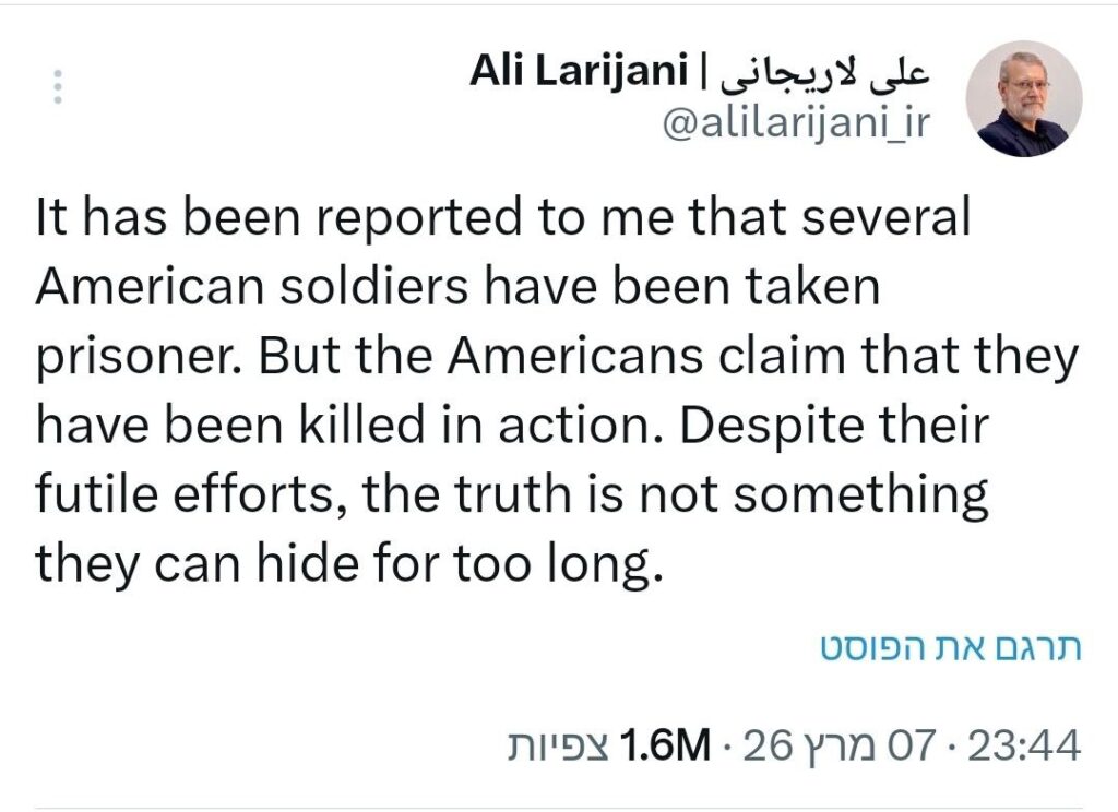 Ali Larijani, Generalsekretär des Nationalen Sicherheitsrats des Iran und eine prominente Figur der aktuellen iranischen Führung, schrieb gestern Abend in mehreren Beiträgen auf X: