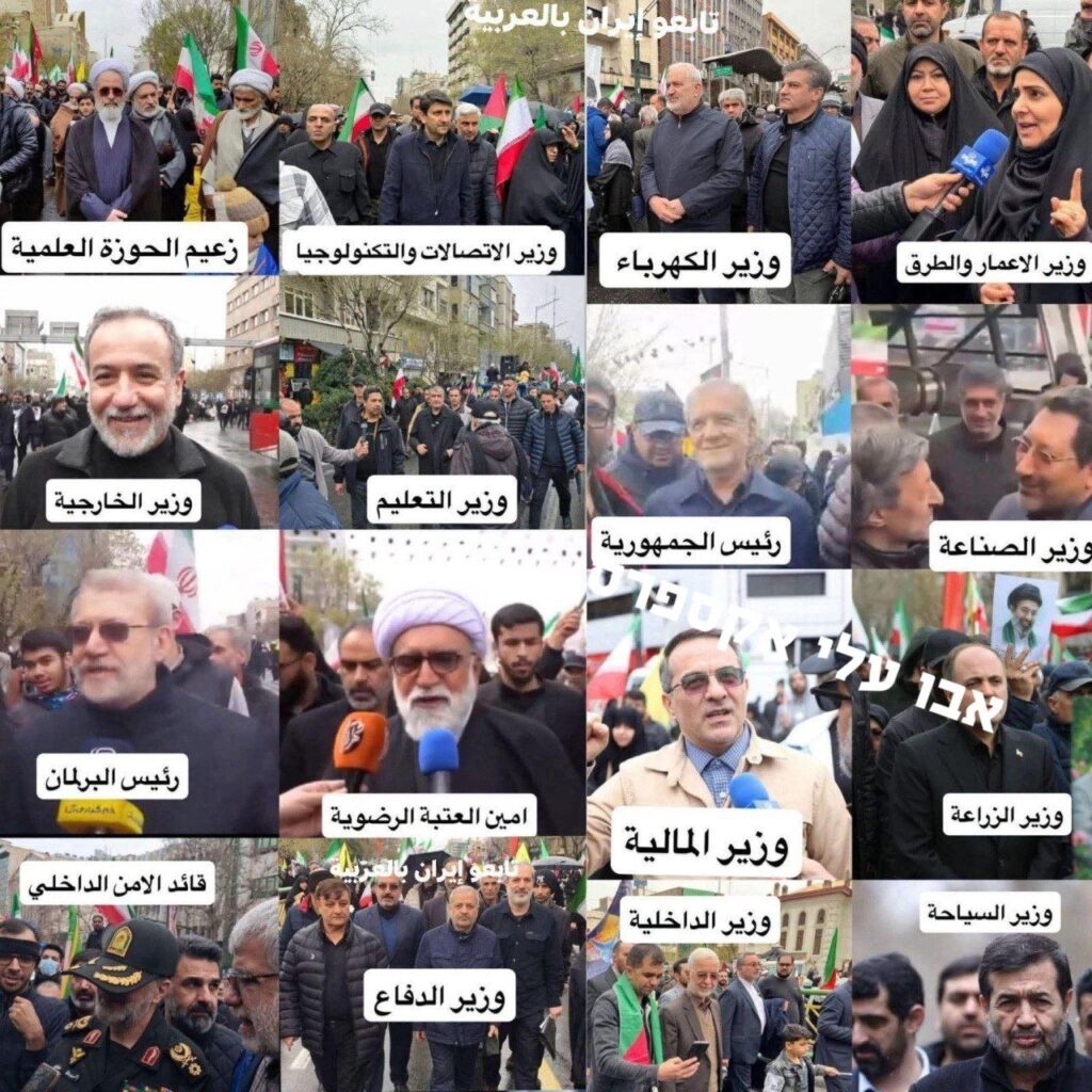 Der Präsident, der Justizchef, der Generalsekretär des Nationalen Sicherheitsrates, der Außenminister, hochrangige Sicherheitsbeamte und weitere Minister – sie alle genießen den „menschlichen Schutzschild“, den die Massen der Regimeanhänger um sie herum bilden.