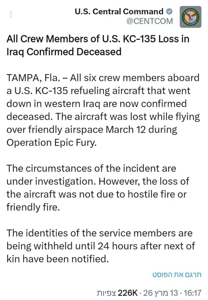 Alle 6 Besatzungsmitglieder des amerikanischen Tankflugzeugs sind bei dem Absturz im Westen des Irak ums Leben gekommen.