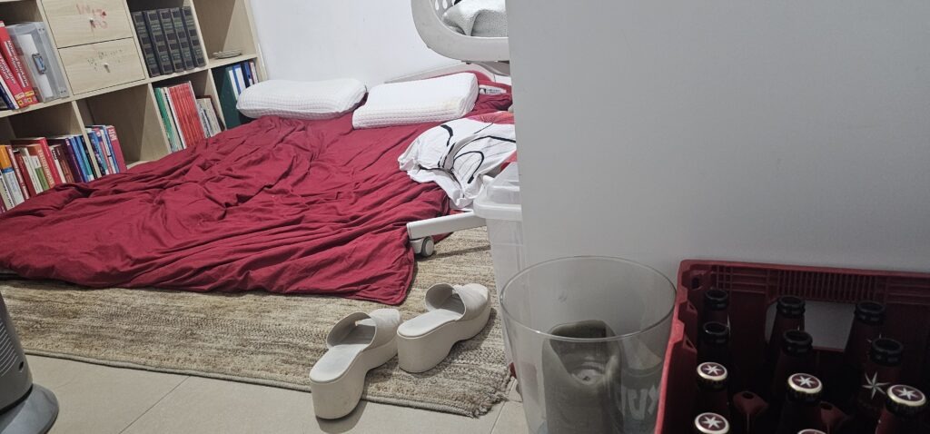 Was uns betrifft, so werden wir in aller Regel aus dem Libanon beschossen. Zwischen dem Aufheulen der lokalen Sirenen und dem BUMM in der Nähe bleiben uns dafür gerade mal zwischen 5 und 10 Sekunden Zeit.