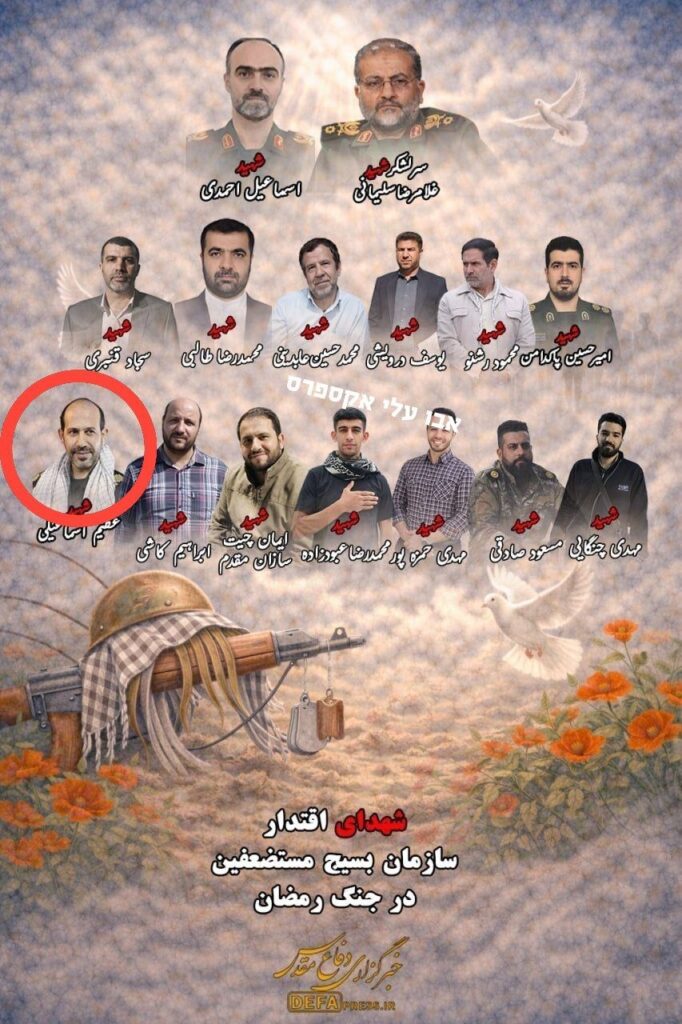 Offizielle iranische Medien bestätigen, dass seit Beginn der Operation 15 hochrangige Funktionäre der iranischen Basij-Milizen getötet wurden, darunter der Basij-Kommandeur, sein Stellvertreter (eingekreist) und der Leiter der Basij-Geheimdienstabteilung.
