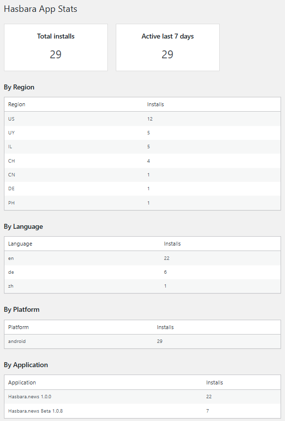 Ich beobachte etwas sehr Interessantes: Die mit Abstand größte Mehrheit der Besucher dieser Web-Seite wurde bislang durch Benutzer im deutschen Sprachraum gebildet, doch was die App betrifft, dort kommt die mit Abstand größte Mehrheit aus den USA.