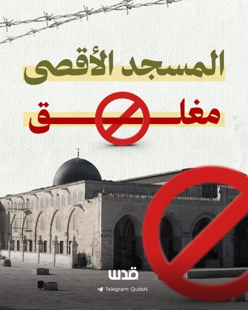 Diese Schließung, die seit der Besetzung der Al-Aqsa-Moschee beispiellos ist, ist keine Sicherheitsmaßnahme, wie von der Besatzungsmacht behauptet, sondern ein geplanter Schritt, um die Moschee zu entleeren, günstige Bedingungen für das Eindringen von Siedlern auf das Gelände zu schaffen und die Pläne der ‚Tempel‘-Organisationen voranzutreiben.