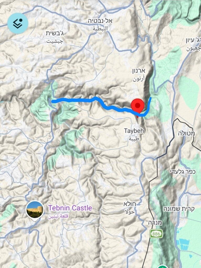 Die Hisbollah gab bekannt, heute mehrfach Raketen auf eine Ansammlung israelischer Soldaten im Bereich der Litani-Route (die Route ist blau markiert) beim Dorf Taybeh abgefeuert zu haben.