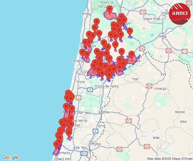 Angriffe der Hisbollah heute Mittag lösten Alarme bis hinunter nach Netanya und Herzliya aus.