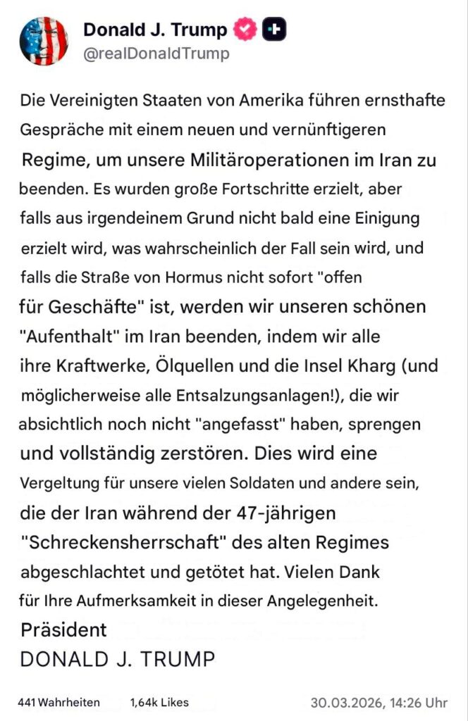 Präsident Trump möchte eine Vereinbarung [mit dem Iran] vor dem Stichtag 6. April sehen