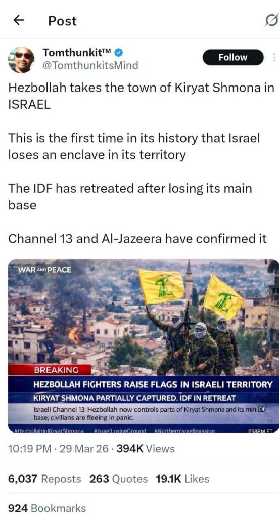 In der Zwischenzeit hat die Hisbollah auf Twitter Kiryat Shmona erobert.