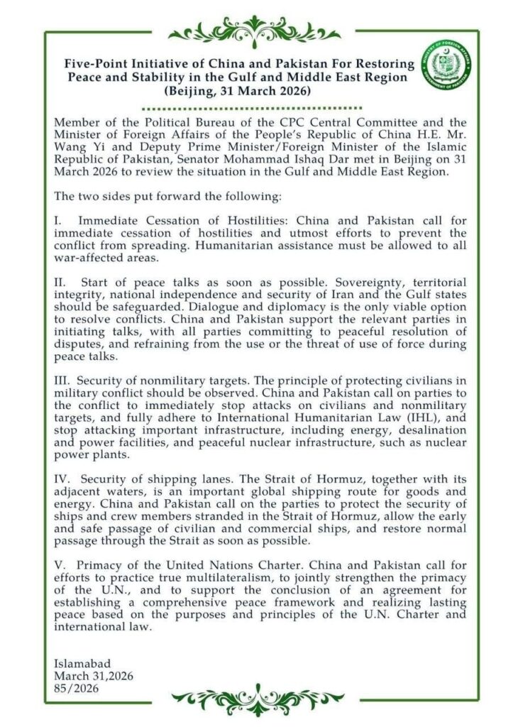Der pakistanische Vermittler veröffentlicht gemeinsam mit China eine Initiative zur Beendigung des Krieges im Iran: