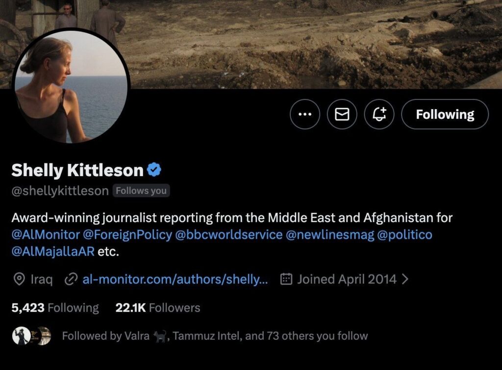 Die amerikanische Journalistin Shelley Kittleson wurde heute in der Al-Saadoun-Straße im Herzen Bagdads entführt.