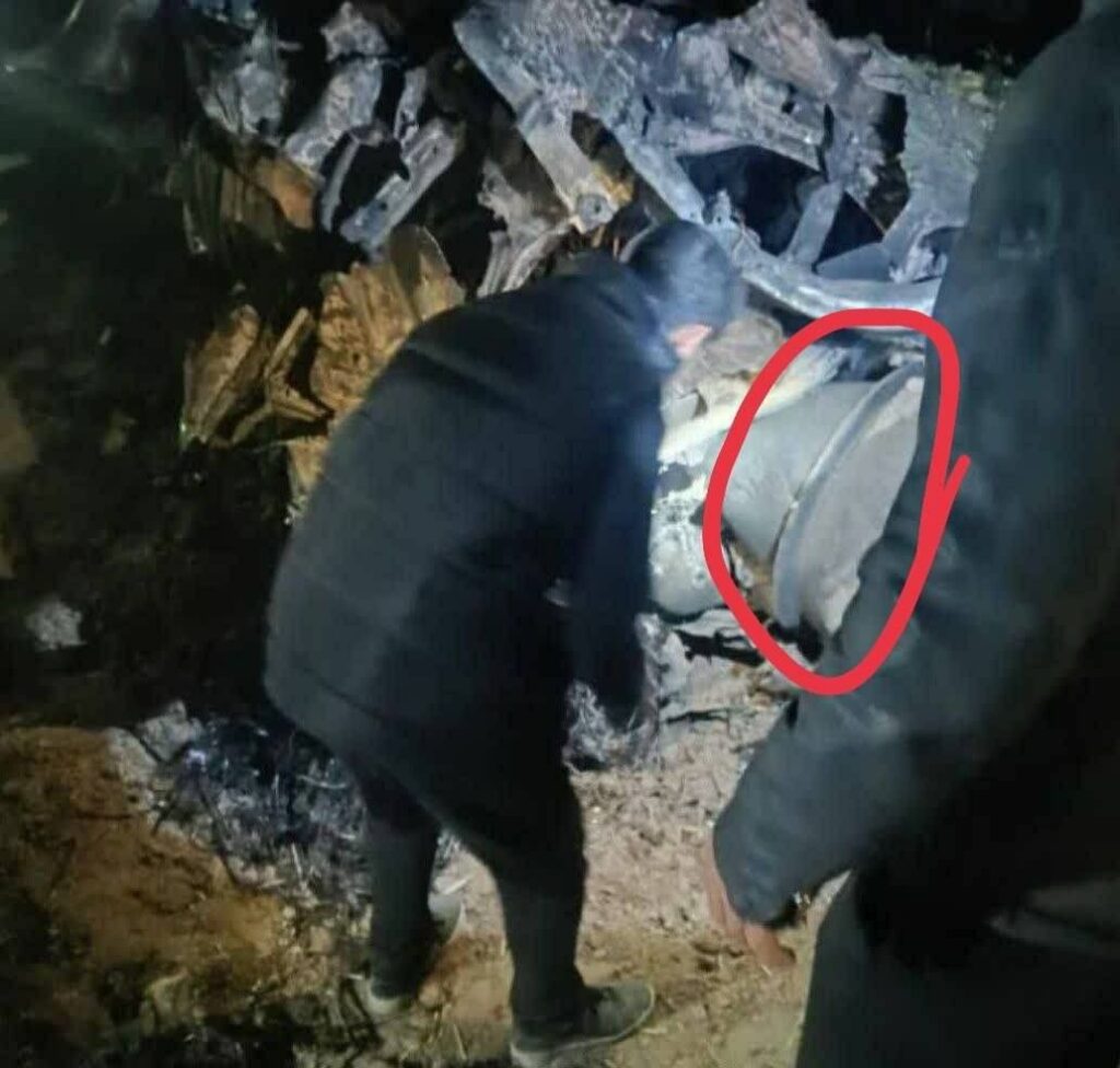 Doch wenn man genau hinschaut, sieht man, dass die Fotos die Trümmer einer iranischen Qadr-Rakete (eine ballistische Rakete) zeigen, die noch über iranischem Territorium niedergegangen ist.