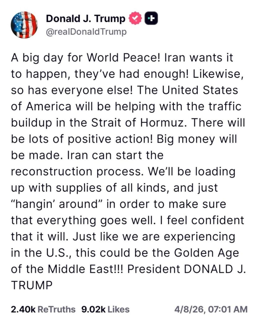 „Ein großer Tag für den Weltfrieden! Der Iran will es, er hat genug! Und alle anderen auch!