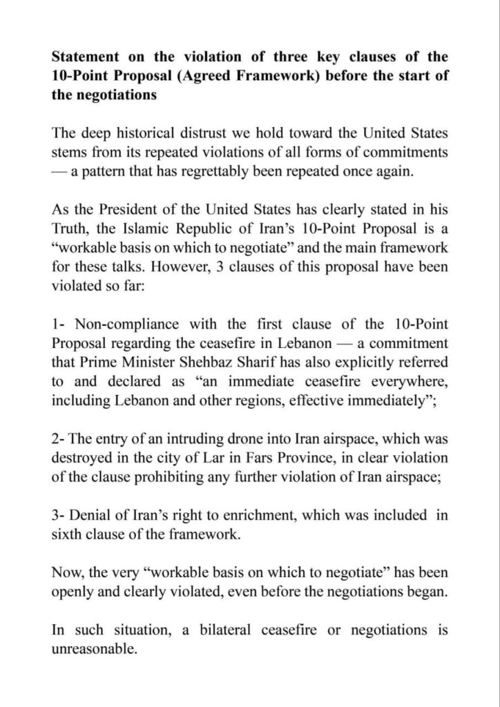 Iran hat dem Feind über Pakistan seinen Zehn-Punkte-Vorschlag unterbreitet, der Folgendes umfasst: