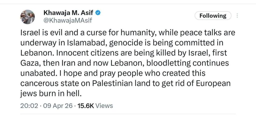 Der pakistanische Verteidigungsminister, dessen Land morgen die Friedensgespräche zwischen dem Iran und den USA ausrichtet: